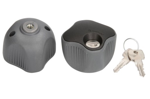 Gałka na klucz zabezpieczająca rower przed kradzieżą, montuje się ją zamiast standardowej gałki. Skutecznie zabezpiecza rower przed kradzieżą. Zasada działania podobna jest jak w wlewach paliwa: klucz wysprzęgla nakrętkę ze śruby. Pasuje do większości standardowych bagażników rowerowych nadaje się także do bagażników rowerowych ze śrubą w szczęce rozmiar - M8.