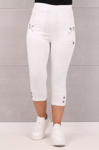 ✅ Proste, nogawki o długości 3/4 wykończone dekoracyjnymi guzikami u dołu