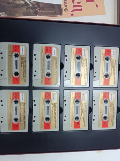 Do zaoferowania widoczny na zdjęciach zestaw 8 kaset magnetofonowych w pudełku razem folderem.