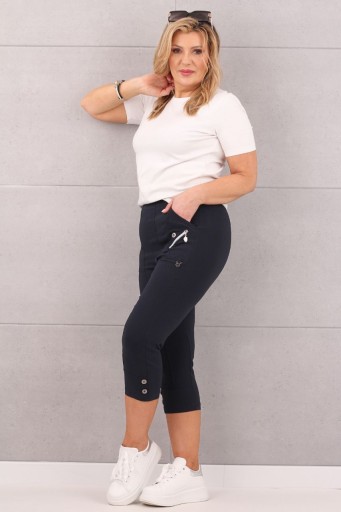 ✅ Proste, nogawki o długości 3/4 wykończone dekoracyjnymi guzikami u dołu