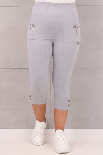 ✅ Proste, nogawki o długości 3/4 wykończone dekoracyjnymi guzikami u dołu