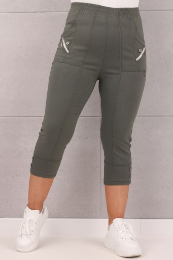 ✅ Proste, nogawki o długości 3/4 wykończone dekoracyjnymi guzikami u dołu