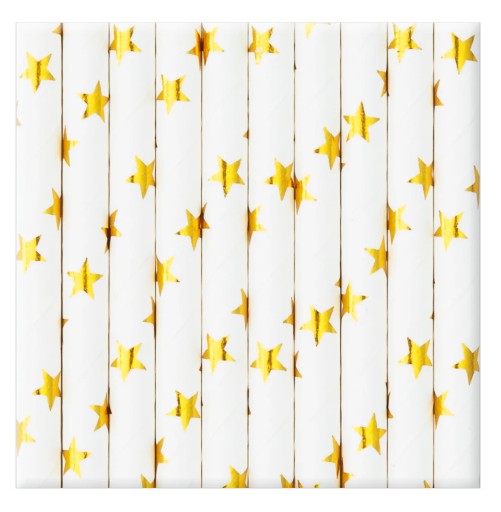 Słomki do picia jednorazowe papierowe rurki BIAŁE w ZŁOTE GWIAZDKI 10 szt.