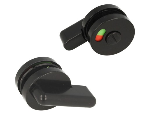Zamek/blokada drzwi (1szt) wykonany z polipropylenu z metalowym trzpieniem. Zamek ma znacznik informujący o zajętości: kolor czerwony – kabina zajęta, kolor zielony – kabina wolna. Możliwość awaryjnego otworzenia zamka z zewnątrz. Uniwersalna budowa zamka sprawia, że może być stosowany zarówno do prawych jak i lewych drzwi wpuszczanych.