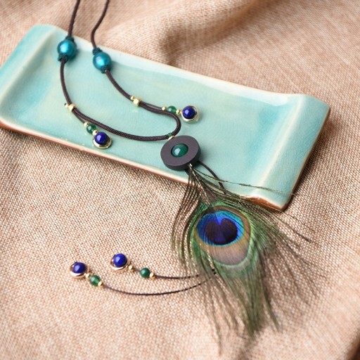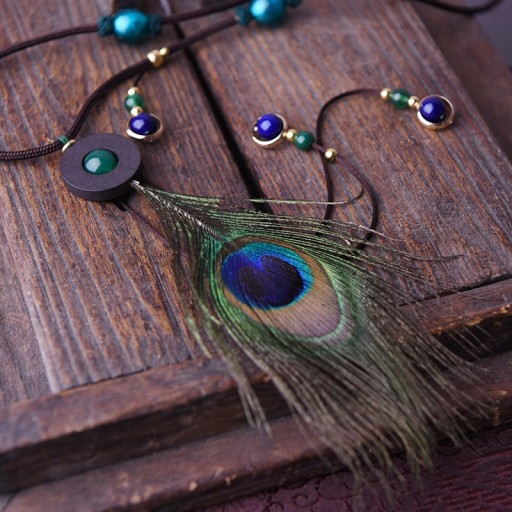 Ręcznie wykonany naszyjnik z pawim piórem jest wyjątkowy i dodaje uroku.