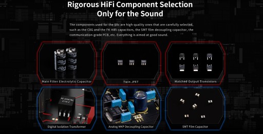 Model S9c Pro złożony jest z aż 1080 komponentów. Firma aune audio wybrała nie tylko topowej klasy płytkę drukowaną (PCB), ale świetne podzespoły, w tym m.in. kondensatory HiFi C0G i FK czy kondensatory foliowe SMT.
