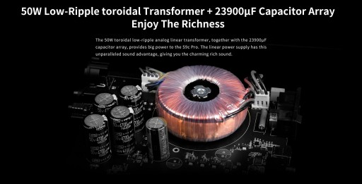 S9c Pro oparty jest na dwóch układach ES9068A, czyli nowych jednostkach firmy ESS Technology. DAC/AMP wyposażony jest do tego m.in. w: wejście zegara 10M, w pełni dyskretny obwód wzmacniacza o wysokiej mocy wyjściowej, specjalne filtry oparte na autorskich algorytmach oraz liniowy transformator pierścieniowy 50 W.
