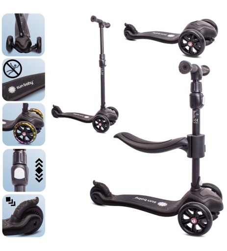 SUN BABY SCOOTER BALANCE BIKE FLASH SKATEBOARD 3в1 со светодиодными колесами черный