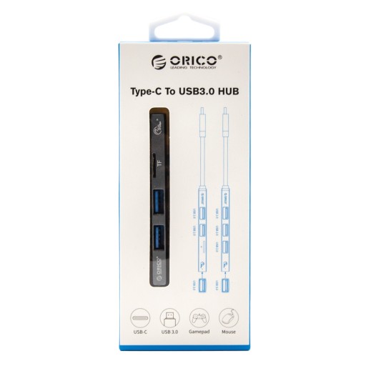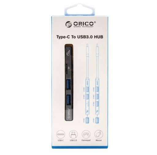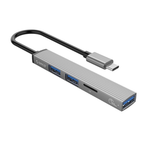 Orico Hub USB-C 3 порта USB-A 3.0, устройство чтения microSD, алюминий, серебристый