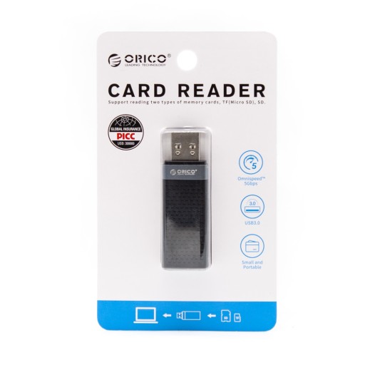 Устройство считывания карт Orico SD и microSD USB A 3.1, черный, маленький, Windows Linux Mac