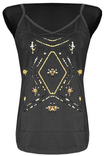 MODEL: BLUZKA NA RAMIĄCZKA Z CEKINAMI CZARNA 108I