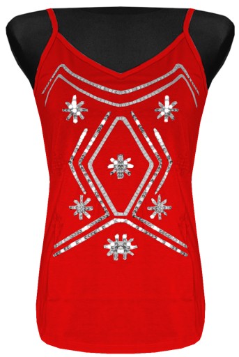 KOSZULKA DAMSKA BLUZKA TOP NA RAMIĄCZKA CEKINY CZERWONA L 40 MODEL:108B