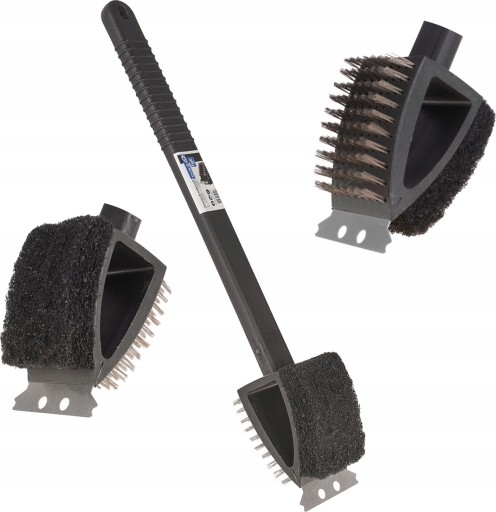 SZCZOTKA DRUCIANA ZE SKROBAKIEM I GĄBKĄ 3W1 – DO CZYSZCZENIA GRILLA