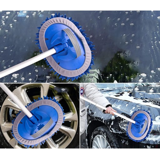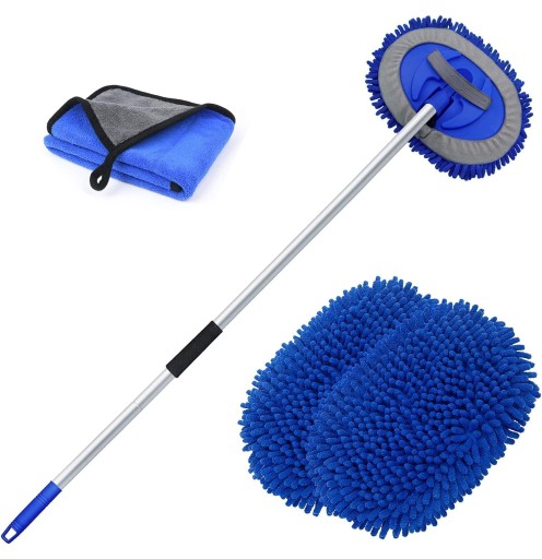 👍👍 Mop do mycia samochodu 3 w 1: zestaw do mycia samochodu zawiera 1 x obrotową głowicę, 2 x wymienne szczotki z mikrofibry, 1 x ściereczkę z mikrofibry. Po zdjęciu głowicy mopa, reszta może być używana jako rękawice do mycia samochodu, na głowicy mopa znajduje się pasek, łatwy do uchwycenia. Otrzymasz profesjonalny mop z dwiema funkcjami do kompleksowego i wydajnego czyszczenia samochodu.