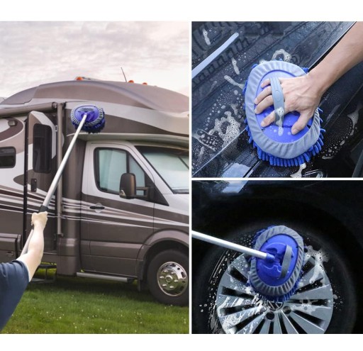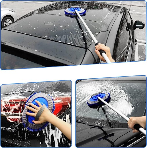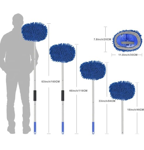 👍👍 Bardzo długi uchwyt: szczotka do mycia samochodu o długości 160 cm z teleskopowym uchwytem może z łatwością dosięgnąć dachu samochodu i innych wyżej położonych miejsc. Kombinowana konstrukcja i regulowana w zakresie 180 stopni głowica mopa zapewniają większą elastyczność podczas mycia samochodu i zapewniają dokładne czyszczenie, skutecznie oszczędzając czas.
