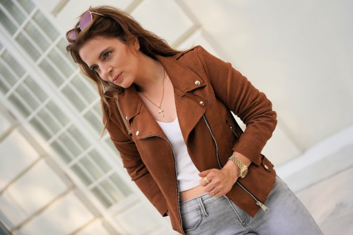 - Kurtka PILOTKA ramoneska ZAMSZOWA.