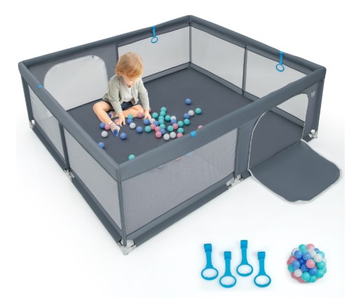 Kojec dla niemowląt 200 x 180 cm z 50 kulkami oceanicznymi i 4 uchwytami i kojcem z drzwiami Kojec Crawling Gate Szary UY10069GR