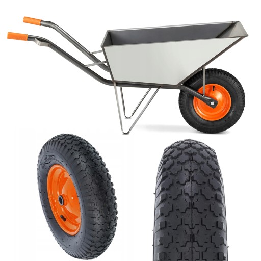 - Tak, taczka jest wyposażona w koło pneumatyczne, które można pompować w razie potrzeby, co zapewnia lepszą amortyzację i łatwość w prowadzeniu.