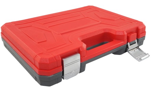 Cały zestaw został zapakowany w funkcjonalną walizkę z tworzywa sztucznego. Dzięki temu każde narzędzie ma swoje miejsce, a poszczególne elementy są łatwe do odnalezienia i użycia. Walizka wyposażona w solidne metalowe zapięcia