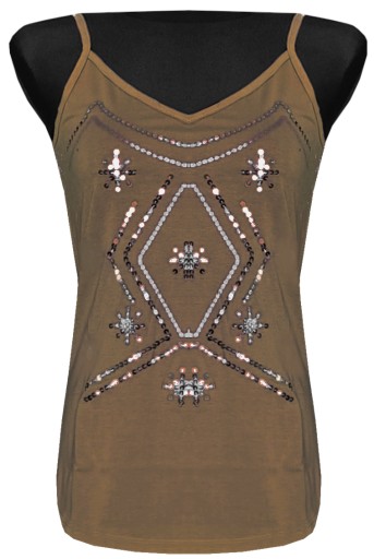 MODEL: BLUZKA NA RAMIĄCZKA Z CEKINAMI BRĄZOWA 108F