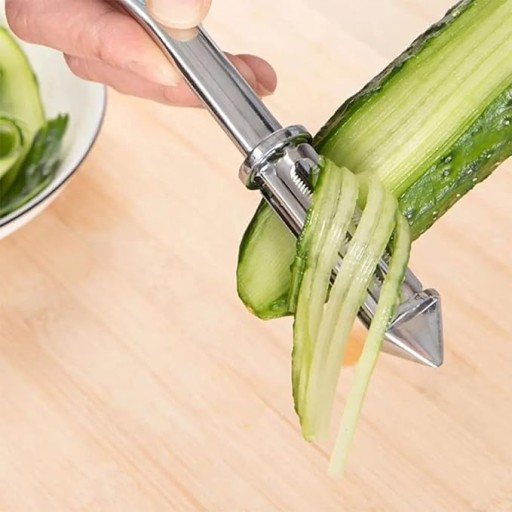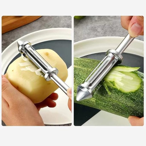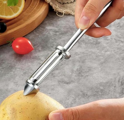Wyposażona w najwyższej jakości ostrza ze stali nierdzewnej, jedno ostrze do obierania warzyw, drugie do krojenia ich w długie paski, przydatne do przygotowywania sałatek.