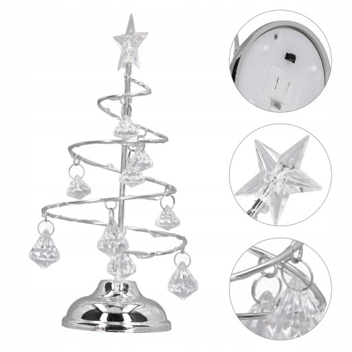 СЕРЕБРЯНАЯ РОЖДЕСТВЕНСКАЯ ЕЛКА ХРУСТАЛЬНАЯ СВЕТОДИОДНАЯ ЛАМПА УКРАШЕНИЕ
