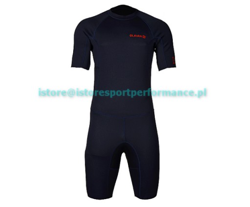 Pianka neoprenowa krótka Olaian jest przeznaczona dla mężczyzn uprawiających sporty wodne takie jak: surfing, windsurfing, kitesurfing, wakeboard, narty wodne itp. w wodach o temperaturze 20°- 25°C. Pianka wykonana jest z neoprenu, neopren jest pianką elastomerową o zamkniętych komórkach (polichloropren) zawierających pęcherzyki azotu, które mają właściwości izolujące. Izolację termiczną zapewnia neopren o grubości 1,5 mm, który jest podszyty poliestrem aby zwiększyć odporność na przetarcia oraz zapewnić pełną swobodę ruchów. Krój pianki umożliwia swobodne wiosłowanie rękami. Neopren zapewnia lepszą odporność na warunki morskie i promieniowanie UV. Płaskie, elastyczne szwy zapewniają szczelność i zwiększają komfort noszenia pianki. Pianka z tyłu zapinana jest na zamek błyskawiczny, dodatkowo posiada zapięcie na rzep co zapobiega rozpinaniu się suwaka.