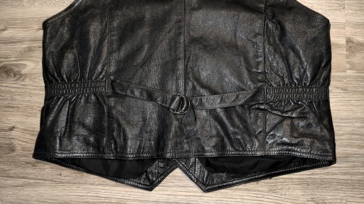 Kamizelka skórzana motocyklowa męska w b.dobrym stanie . Zapinana na guziki. Wymiary długość-57cm, klatka-112cm. Rozmiar na metce (L)
