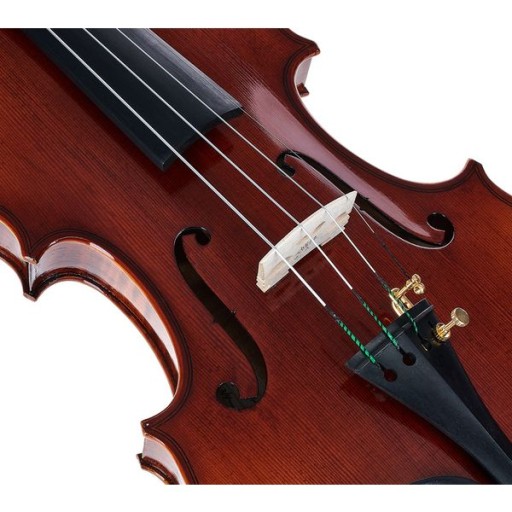 Roth & Junius CE-01 Classic Etude Violin Set 3/4, w pełni solidne skrzypce, top z litego świerku, tył z litego i pięknie płomieniowanego klonu, boki i gryf z klonu, hebanowa podstrunnica, hebanowa strunnica z precyzyjną regulacją dla struny E, ręcznie nakładany lakier spirytusowy, w zestawie kalafonia, smyczek i case-torba-pelcak.