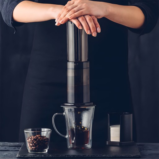 - Prosta obsługa: Umieść filtry, dodaj kawę i wodę, delikatnie naciśnij tłok. Dzięki ciśnieniu kawa jest gotowa w kilkadziesiąt sekund.