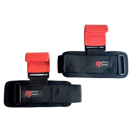 Haki do podnoszenia ciężarów MuscleForge to profesjonalne narzędzie wspomagające intensywny trening siłowy. Haki wspomagają chwyt, trzymając sztangę, hantle lub drążek.