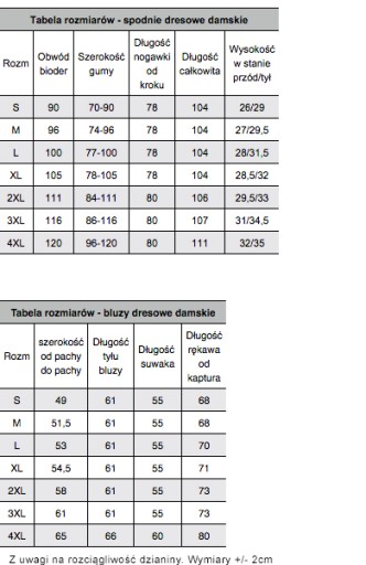 Aby właściwie dobrać rozmiar dresu, zapoznaj się z tabelami rozmiarów