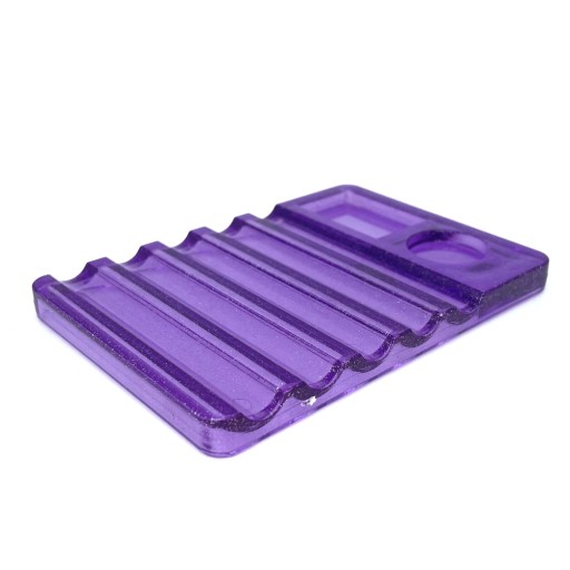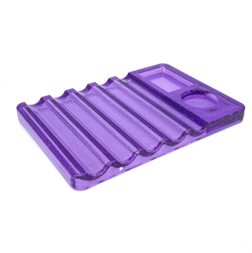 Пластиковая подставка для кистей фиолетового цвета с палитрой.