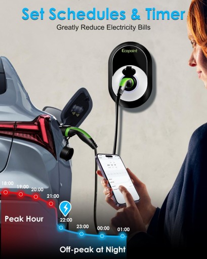 - Wallbox typu 2 może wyświetlać dane dotyczące ładowania w czasie rzeczywistym, ustawiać harmonogramy ładowania i timery.