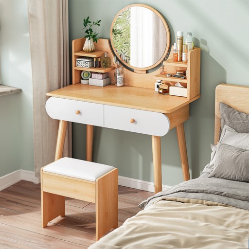 БОЛЬШОЙ ДЕРЕВЯННЫЙ КОСМЕТИЧЕСКИЙ СТОЛИК С ЗЕРКАЛОМ ДЛЯ МАКИЯЖА В СКАНДИНАВСКОМ СТИЛЕ