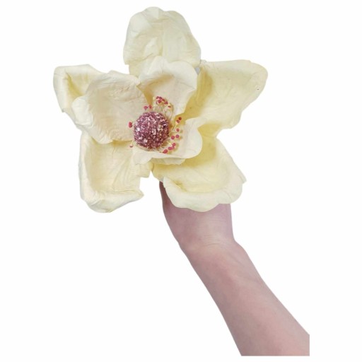 Dzięki starannie wykonanym kwiatom i pąkom, gałązka magnolii oddaje naturalną strukturę i wygląd prawdziwej rośliny. Jej średnica w pełni rozwiniętego kwiatu wynosi około 20 cm, a całkowita długość gałązki to około 30 cm. Ta realistyczna dekoracja sprawi, że Twoje wnętrze nabierze uroku i świeżości, bez konieczności regularnej pielęgnacji czy wymiany świeżych kwiatów.