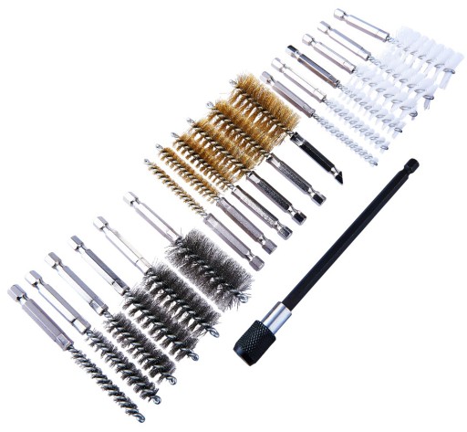 Opis produktu: Zestaw szczotek do gniazd wtryskiwaczy, gniazd świec iskrowych i żarowych. W komplecie jest przedłużka i uchwyt. 18 szczotek do czyszczenia o rożnej twardości. Szczotki nadają się również do użytku w wiertarkach elektrycznych i pneumatycznych. Wszystkie szczotki z napędem 1/4". Do czyszczenia i gratowania cylindrów, tulei, rur, gniazd świec, wtryskiwaczy itp.
