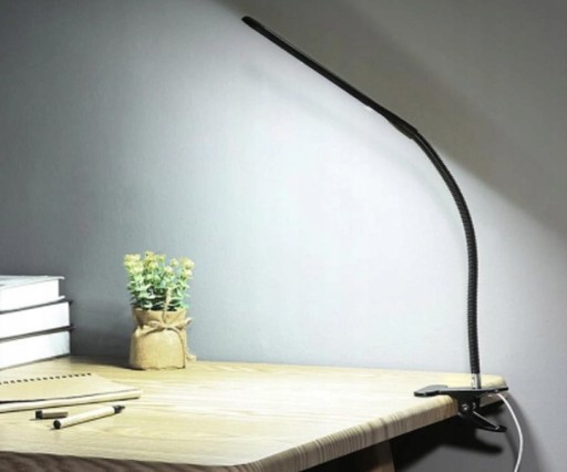 Lampka LED z elastycznym ramieniem, oraz klipsem który pozwoli przymocować ją do blatu biurka. Klips zapewnia stabilną pozycje.