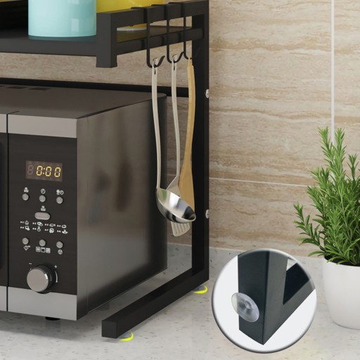 - Jest to stojak kuchenny, wykonany z materiałów metalowych, jest gruby i początkowy, powierzchnia jest gładka i płaska. Kompaktowy, ale praktyczny, do przyprawiania piekarnika, kuchenki mikrofalowej itp. Ułatwione życie w kuchni i sprawia, że kuchnia jest czysta i zarejestrowana.