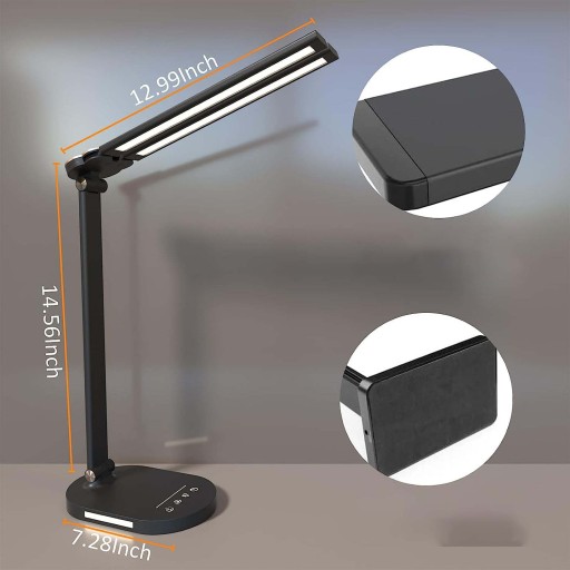 - Nasza lampa biurkowa LED ma 5 trybów kolorów i 5 poziomów jasności, z prostą i łatwą swobodną regulacją za pomocą dotykowego paska przyciemniającego, od białego światła do ciepłego światła (2800 K - 6500 K), od 10% do 100% jasności, Spełnij różne potrzeby oświetleniowe na różne okazje.