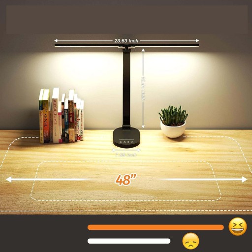 - Ta lampa biurkowa LED ma 80 wbudowanych, wysokiej jakości, energooszczędnych koralików lampowych o współczynniku CRI>85, światło jest jasne i równomierne, wygodne i nie oślepiające, co doskonale eliminuje odblaski i zmniejsza zmęczenie oczu, poprawiając w ten sposób wydajność pracy, idealny do długich godzin pracy w biurze, czytania, nauki i relaksu.