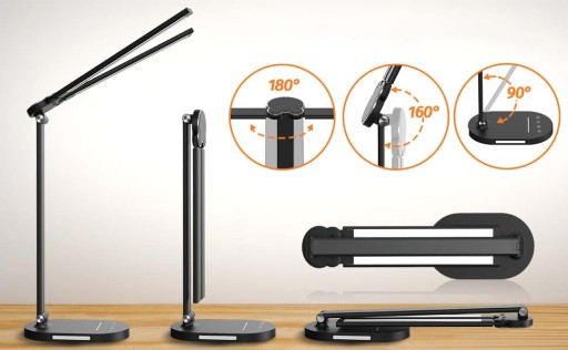 - Lampa biurkowa ma konstrukcję z podwójnym wahaczem. Ramię wahadłowe podwójnych świateł może rozszerzać się w poziomie w zakresie 0-180 °, maksymalny kąt 180 ° jak linia prosta.