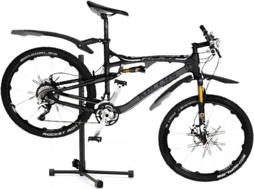 Stojak rowerowy, idealny do wygodnego przytrzymywania roweru podczas jego serwisowania. Regulowana wysokość umożliwia ustawienie na nim roweru każdego typu - niezależnie od kształtu jego ramy bądź specyficznego ugięcia tylnych widełek. Pokryte gumą haki uniemożliwiają przypadkowe porysowanie i uszkodzenie jednośladu. Stabilna, stalowa konstrukcja umożliwia stabilne trzymanie się roweru podczas serwisowania.