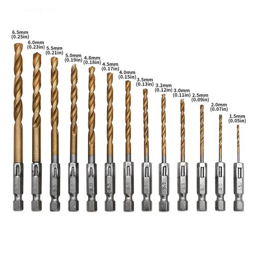 13 sztuk wierteł spiralnych 1,5 mm-6,5 mm zestaw wierteł z chwytem sześciokątnym do stopu aluminium