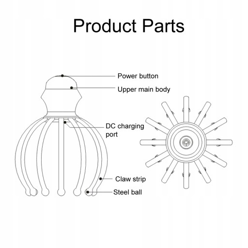 Funkcja:1. Stalowa kulka obraca się, aby masować głowę, łagodzić swędzenie, poprawiać zmęczenie i napięcie.