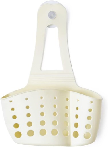 Praktyczny koszyczek do trzymania gąbki lub podkładki do szorowania i utrzymywania blatów w czystości, bez bałaganu wokół zlewu.