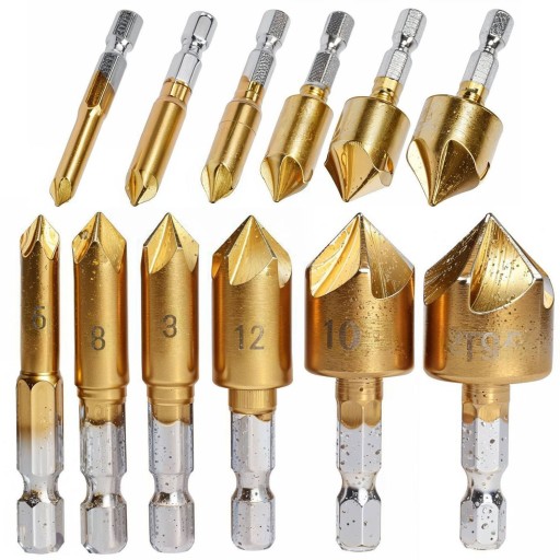 WIERTŁA FREZUJĄCE FREZY STOŻKOWE POGŁĘBIACZE 6-SZT