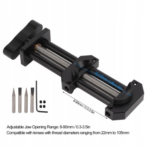 3. Zakres zastosowania: Kompatybilny z soczewkami o średnicy gwintu od 22mm do 105mm, spełniający potrzeby większości rozmiarów obiektywów.