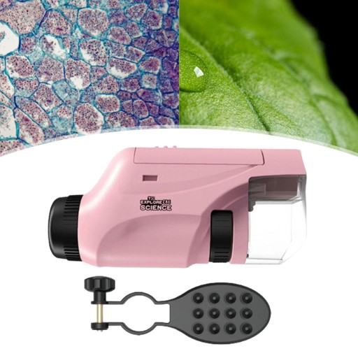 Детский оптический микроскоп, образовательный ручной мини-микроскоп, розовый, с подставкой