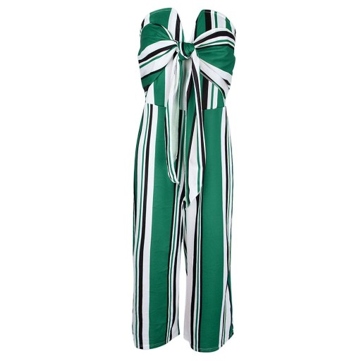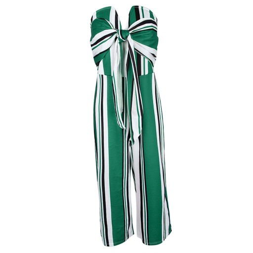 Kombinezon w paski, wiązany z przodu, bez ramiączek, długie spodnie z szerokimi nogawkami, Romper S, zielony